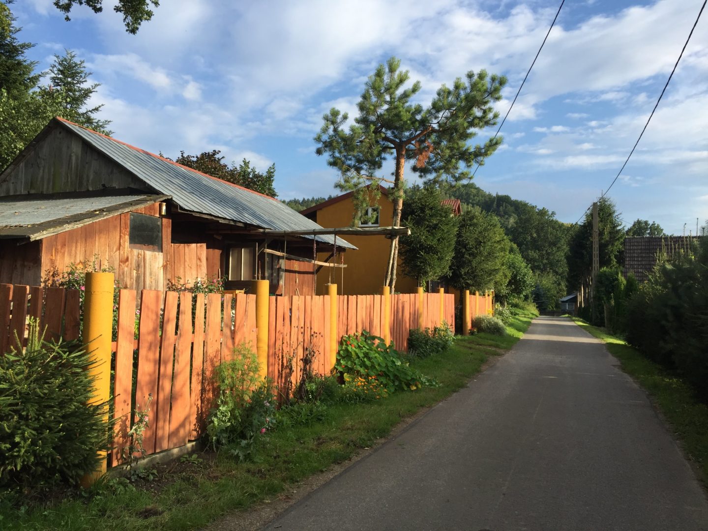 Idziemy dalej. Z głównej drogi odbijamy w wąską asfaltówkę, która kończy się niedługo i zamienia w drogę szutrową. Tu zaczyna się nasz skrót przez łąki.