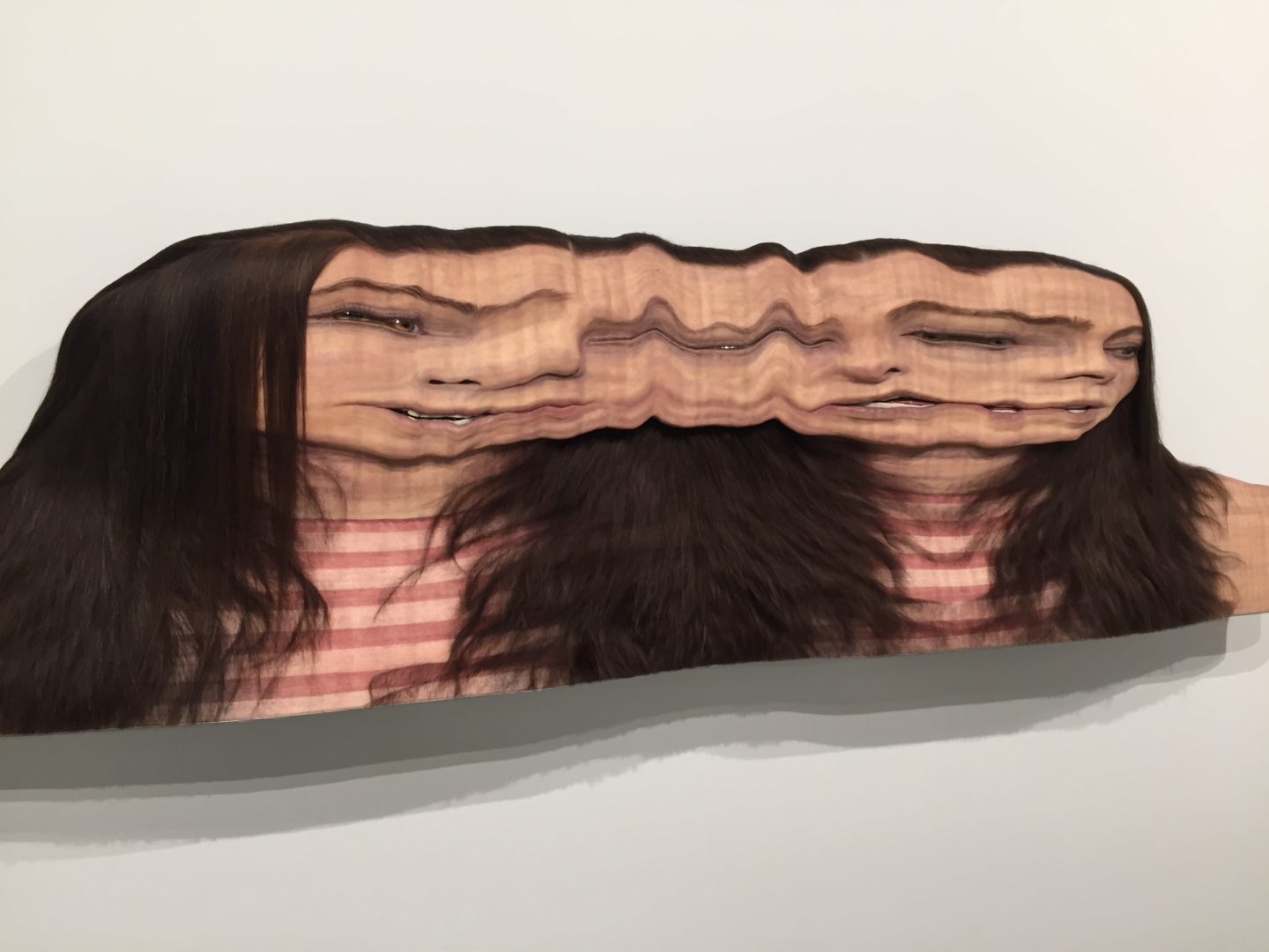 A to rozciągnięta na ścianie twarz kobiety, patrząc z profilu wygląda normalnie.