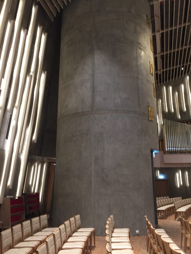 Podobno w Alcie są najlepsze warunki do obserwacji zorzy polarnej, bo w zimie często jest bezchmurne niebo. Odbywa się tu nawet coroczny Borealis Vinterfestival. Katedra jest podkreśleniem, że Alta to światowa stolica zorzy. Nie byle jakim podkreśleniem. Uważana za jedną z piękniejszych współczesnych świątyń, została otwarta w 2013 roku. Sprawiła nam nie lada niespodziankę, bo nie wiedzieliśmy wcześniej o jej istnieniu. Nasz przewodnik po Norwegii, mimo aktualizacji z 2015 roku milczy na jej temat. Wstyd Pascalu! Na szczęście nie da się jej przeoczyć, bo stoi niemalże na drodze. Pojawiła się przed naszymi oczyma jak jakaś kosmiczna konstrukcja. Spiralny budynek ma 47 m wysokości, a jej fasada pokryta jest tytanem i to on funduje widzowi takie widowisko światła. Wnętrze jest równie niesamowite. Byliśmy w nim zupełnie sami.