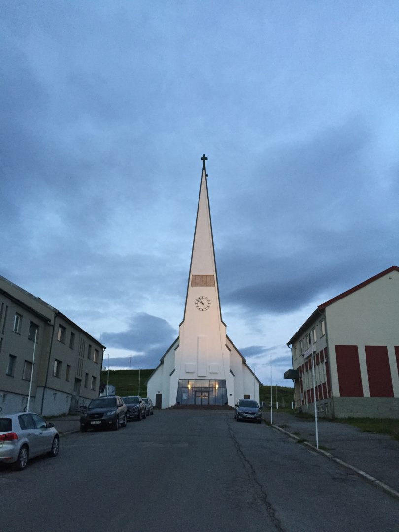No dobra, co zrobić z tak pięknie rozpoczętą podróżą? Wcale nas nie ciągnie z powrotem na południe. Chcemy się nacieszyć surowością północy i długimi dniami. Przewodnik już się skończył, przejechaliśmy cały. Na pomoc przychodzi nam tablica informacyjna o Narodowych Szlakach Turystycznych Norwegii. Pokazano na niej zdjęcia wybranych miejsc i oznaczenie ich na mapie. Moją uwagę przyciąga zdjęcie dziwnej konstrukcji w kształcie wrzeciona stojącej nad brzegiem morza i palący się obok gigantyczny znicz. Robię zdjęcie. Szukamy na mapie tego miejsca. Jest daleko, na najdalszej wyspie Norwegii położonej na krańcu wschodnim. Jedźmy tam!