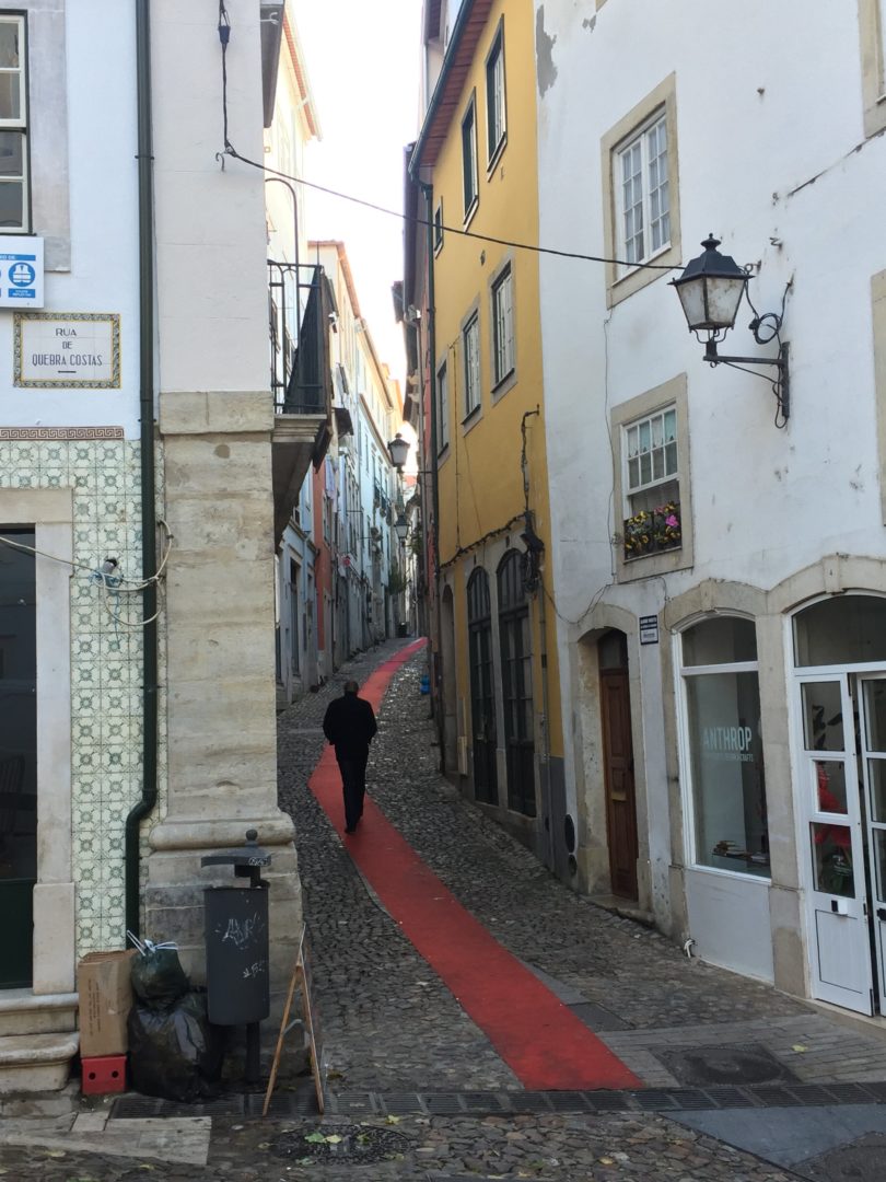 Wspinamy się pod górę wąskimi uliczkami oraz schodami. Czasem na tych schodach stoją stoliki knajpianych ogródków. Wszędzie młodzi ludzie, studenci. W końcu to oni rządzą tym miastem. Coimbra nazywana jest „miastem studentów”.